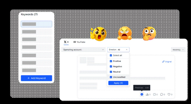 ● Automatically track keywords across platforms to catch every signal.