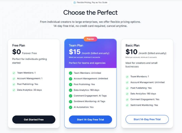 As your needs expand, you can easily upgrade to access multi-account management, advanced analytics, and premium AI features that scale with your growth.