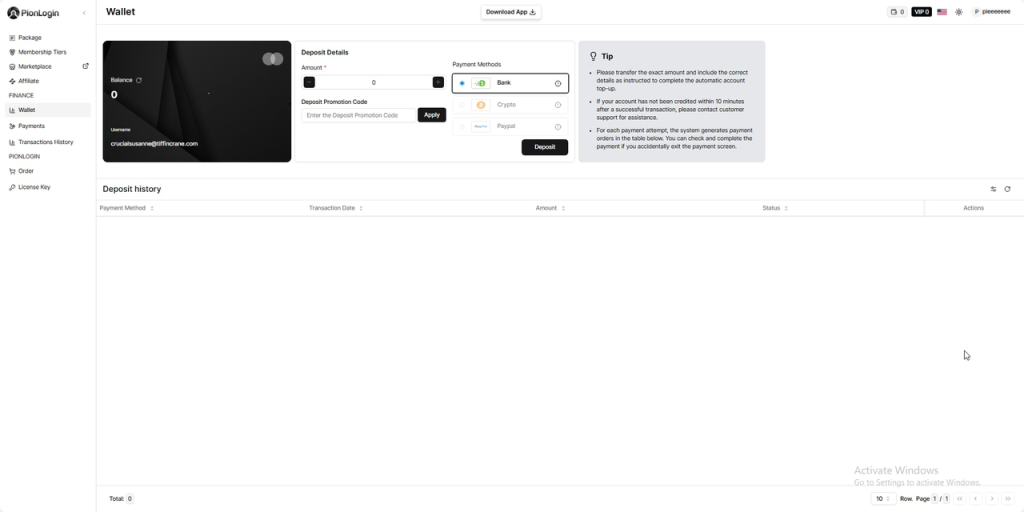 步骤 2:进入套餐页面 → 购买合适的密钥(Combo basic, combo pro、PionLogin Key、Script Key、Cloud Key号